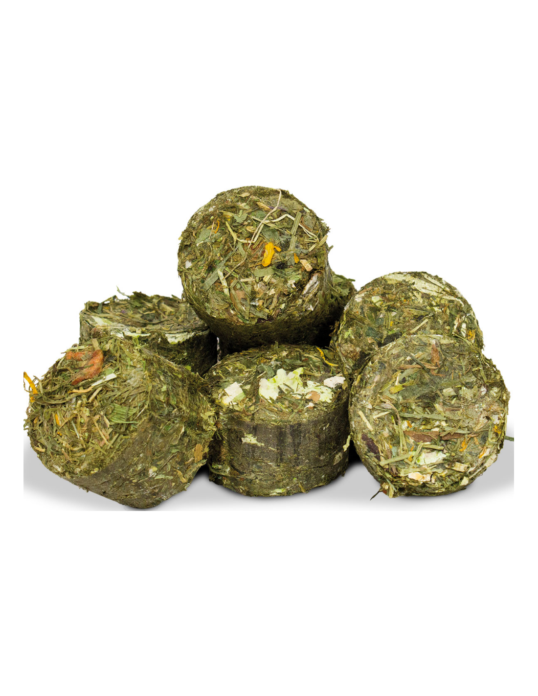 Skład: flora rosnąca na trwałych pastwiskach podnóża alpejskiego, płatki grochu, płatki bobiku, marchew 5%, siemię lniane, pasternak, ziele owsa, mięta pieprzowa, babka lancetowata, nagietek, burak, nasiona kopru włoskiego, melisa, liście brzozy, liście malin, mniszek lekarski, czarnuszka, orkisz, rumianek, ogórek, cukinia