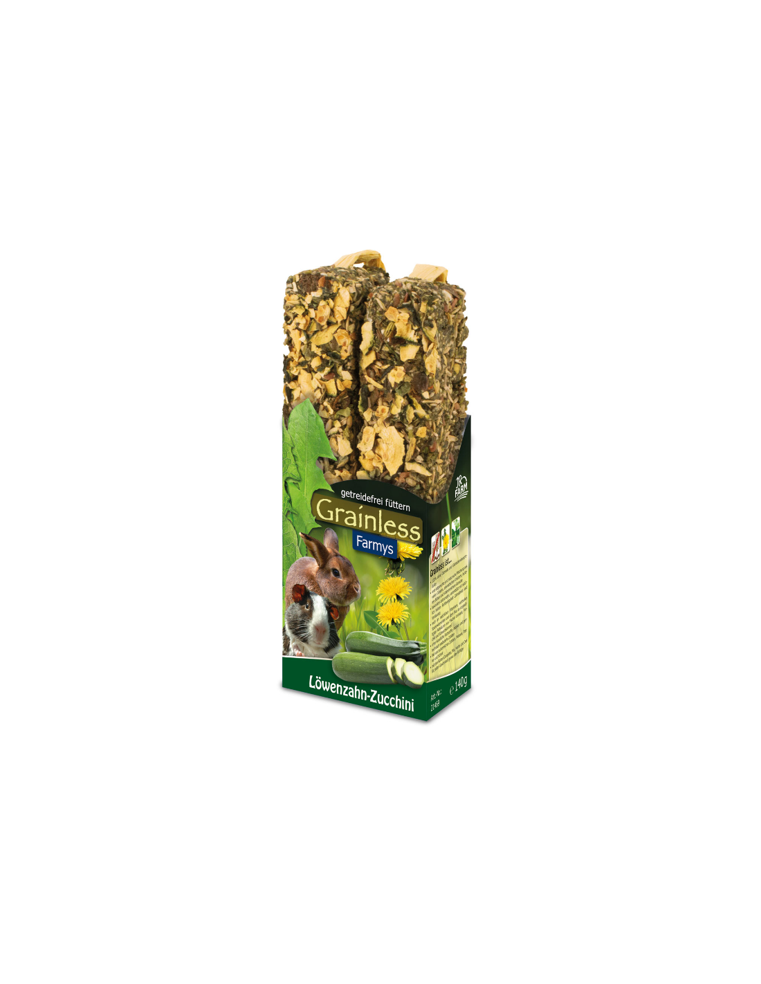 Skład: płatki grochu, nasiona grochu, nasiona trawy kanaryjskiej, pokrzywa, kasza gryczana, mniszek lekarski 3,1%, cukinia 3%, pietruszka, marchew, nasiona konopi, siemię lniane, nasiona kopru włoskiego, mięta pieprzowa, nasiona czarnuszki, skrobia grochowa