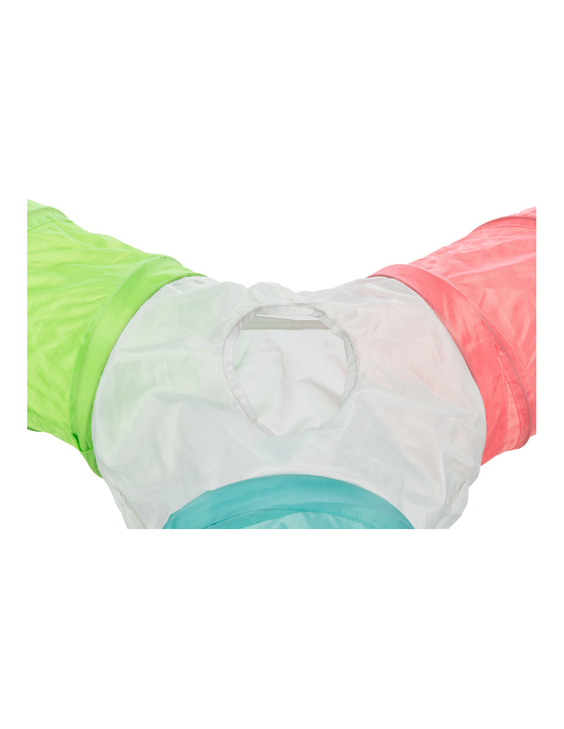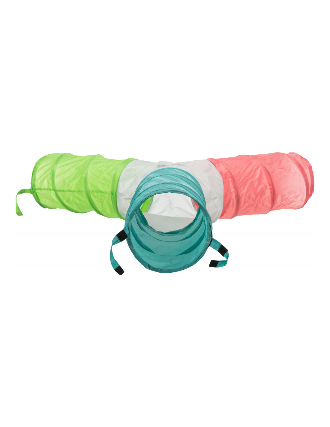 Tunel jest nylonowy i posiada cztery wejścia. Dzięki rusztowaniu ze sprężyn jest stabilny i może być rozszerzony o dodatkowy tunel Trixie o numerze katalogowym 62792.
