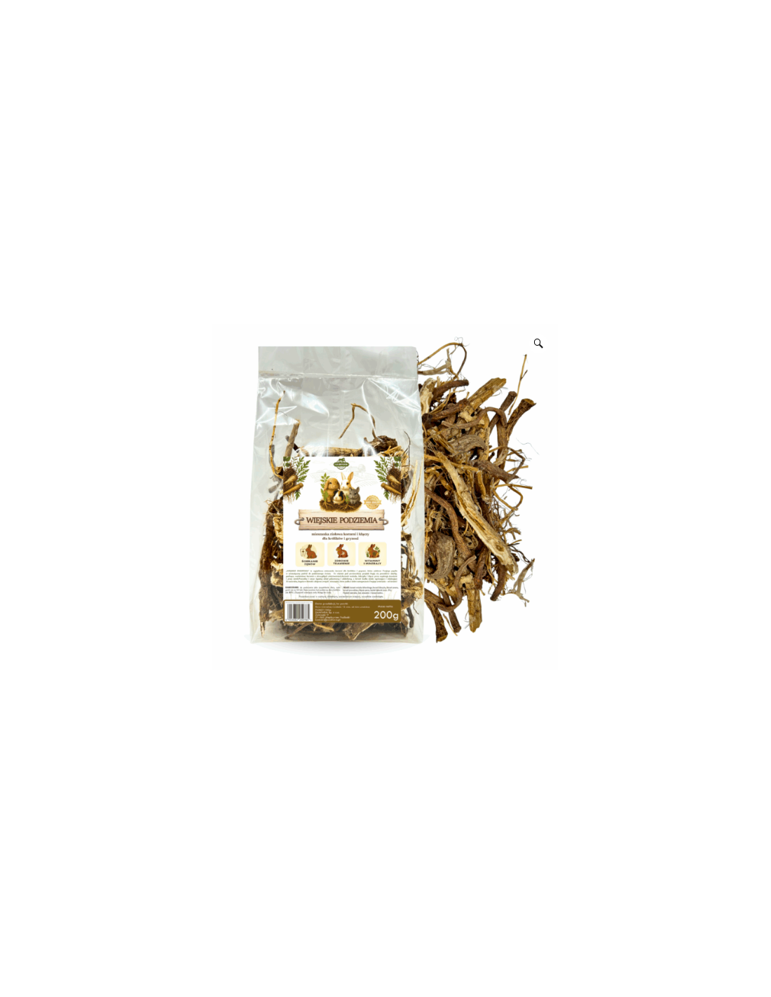 Wiejskie Podziemia to mieszanka naturalnych korzeni i kłączy dla królików i gryzoni: mniszka, lubczyku, prawoślazu, omanu, kozłka lekarskiego oraz kłącza perzu wspiera naturalną pracę układu pokarmowego, odporność oraz ogólną kondycję.